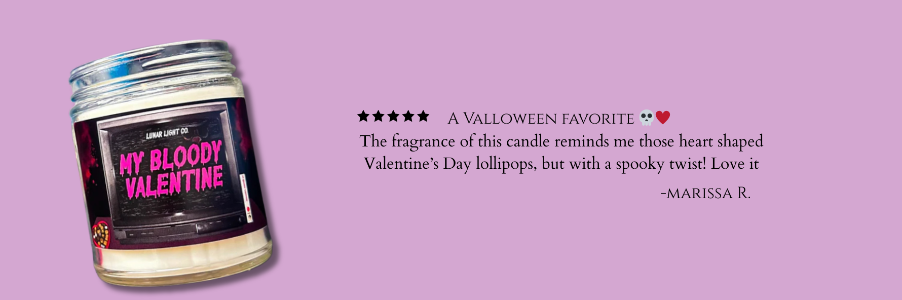 Lunar Light Co. is an independent woman-owned small business established in 2018, one of the very first halloween/horror candle company of its kind. For lovers of the dark, dreary, and all things Halloween. We create dark, witchy candles and custom-blend every fragrance, not to be different, but because they are different. Using a proprietary blend of wax for clean burns and bold scent throws, each candle, perfume oil, and fragrance mist is handmade in small batches for top quality. The uniqueness of each of our scent blends are paired with an in-house designed label to perfectly fit in with gothic decor or to give your space a witchy aesthetic. Lunar Light Co. uses only premium-grade phthalate-free fragrance oils and is dedicated to using only the highest quality ingredients for candles and fragrances. All of our products are vegan and cruelty free.